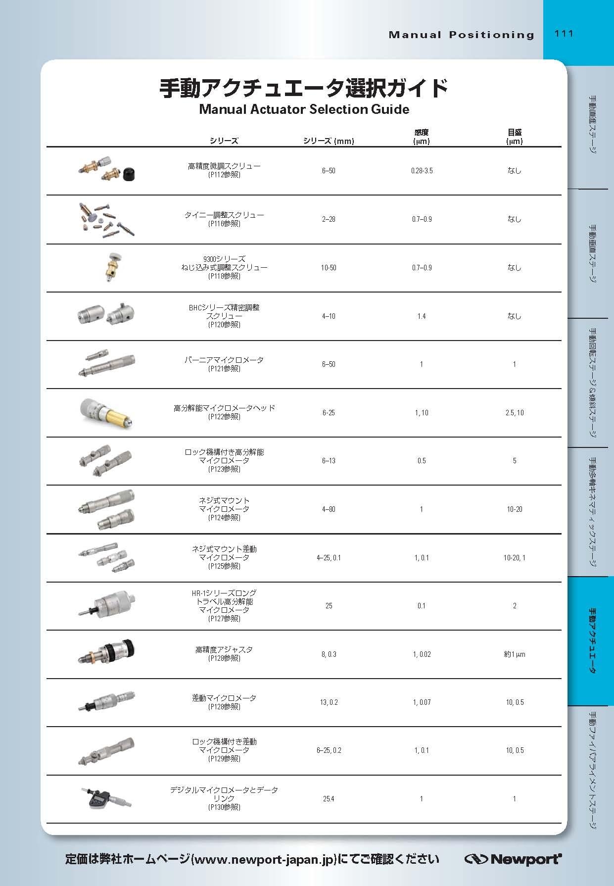 右上の「カタログPDF」アイコンをクリックすると、ニューポート社手動アクチュエータの選択ガイドをダウンロードできます。