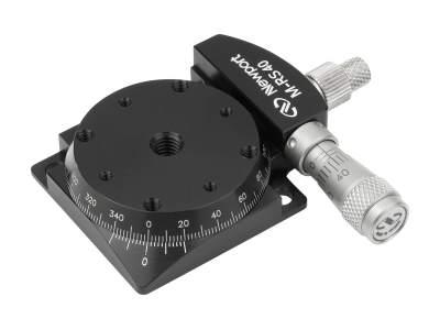 RSシリーズ回転ステージはアルミ製で、精密加工されたブッシュ内を360°回転します。ステージ側面のつまみネジを締めると、プラットフォームが精密アクチュエータで正接駆動されます。RS40にはBM11.5マイクロメータが付いています。RS65にはアクチュエータが付いていないため、微調スクリュー、マイクロメータ、差動マイクロメータ、電動アクチュエータ、電歪アクチュエータのいずれかをお選びください。