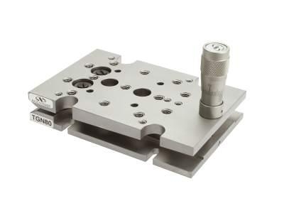 TGN傾斜ステージは大きい部品や重い部品の高分解能アラインメントに適し、1つの回転軸の傾斜を±2.86°の範囲で調整できます。