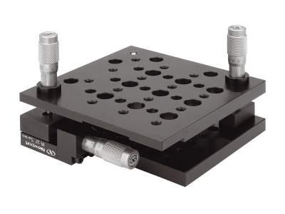 多軸傾斜ステージを使用すると、光学部品の位置決めの際の傾斜や回転角を調整できます。研磨仕上げの焼き入れ鋼製ボールピボットと、焼